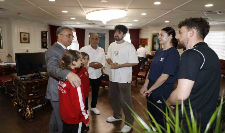 Tekvando branşında 2023 yılında Hollanda Rotterdam’da düzenlenen şampiyonada, Avrupa üçüncüsü ve şubat ayında Konya’da düzenlenen Türkiye Şampiyonasında büyüklerde Türkiye Şampiyonu olan İlkadım Belediyespor sporcusu Oktay Atalay ve minik tekvandocular Hazal İnce ve Elif Devran İnce ile antrenör Doğan Demir’i misafir eden İlkadım Belediye Başkanı İhsan Kurnaz, "Sporcularımızın ulusal ve uluslararası düzeyde elde ettikleri başarılar hepimizi gururlandırıyor. Bedensel ve ruhsal sağlığımızı güçlü tutabilmek adına, spor yapmanın önemini biliyoruz. Bu noktada 7’den 70’e hemşehrilerimizin spor yapabilmesi adına spor altyapımızı daha da güçlendiriyoruz. Bunun yanı sıra, tesislerimizde sporcu yetiştirilmesi adına çalışmalar da devam ediyor. Okulların kapanması ile birlikte, yaz aylarında da tesislerimizde sporcu yetiştirme faaliyetleri ve kurslarımız devam edecek. Tüm sporcularımıza ve antrenörlerimize başarılar diliyorum. Onların alacakları başarılar, İlkadımlı hemşehrilerimizin de göğsünü kabartacaktır" diye konuştu.