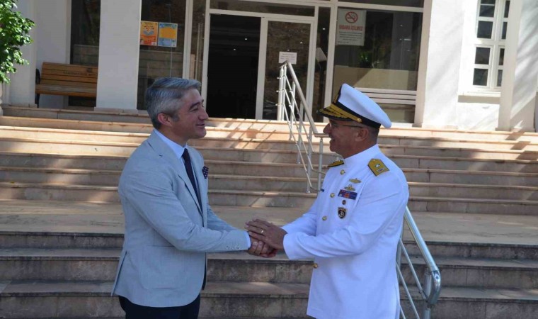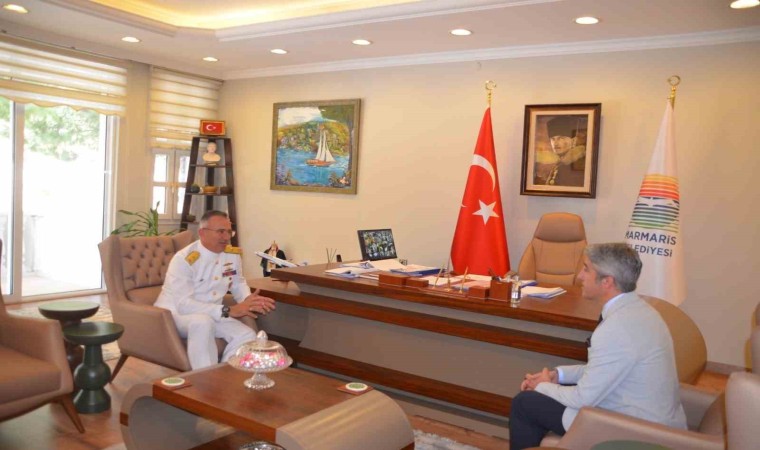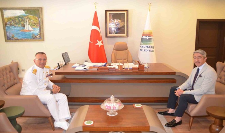 Aksaz Deniz Üs Komutanı Tuğamiral Neslim Eski, Marmaris Belediye Başkanı Mehmet Oktay’ı ziyaret etti.