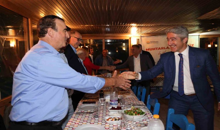 19 Ekim Muhtarlar Günü nedeniyle Marmaris’in 25 mahallesinde görev yapan muhtarlar için bir yemek düzenlendi. Yemeğin ev sahipliğini Marmaris Belediye Başkanı Mehmet Oktay yaparken, Marmaris Kaymakamı Nurullah Kaya ve Belediye Başkan Yardımcıları da muhtarları yalnız bırakmadı. Yemeğe katılan muhtarlar adına bir konuşma yapan Çamdibi Mahallesi Muhtarı Metin Aktepe, “Ben eski bir muhtarım. Evveliyatını da bildiğim için, son yıllarda bizlere verdiğiniz kıymet için sizlere çok teşekkür ediyorum” ifadelerini kullandı.