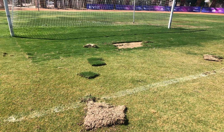 Kuşadası Belediyesi tarafından Özer Türk Stadı’nın bulunduğu alanda Park ve Bahçeler Müdürlüğü tarafından düzenli olarak bakımı yapılan çim saha kimliği belirsiz kişilerce tahrip edildi. Belediye Başkanı Ömer Günel, “Kuşadası halkına ait kaynaklarla kentimize yaptığımız yatırımlara zarar vermek açıkça vandallık ve halk düşmanlığıdır” dedi.