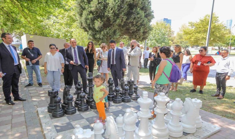 Kuzey Kıbrıs Türk Cumhuriyeti’nin başkenti Lefkoşa Türk Belediyesi’nin Başkanı Mehmet Harmancı ve beraberindeki heyet, Bayraklı Belediye Başkanı İrfan Önal’ı ziyaret etti. Başkan Önal, iki kardeş kent arasında yapılacak her türlü iş birliğine açık olduklarını ifade etti. Mansuroğlu Mahallesinde yer alan ‘Bayraklı Belediyesi 100.Yıl Matematik ve Zeka Oyunları Parkı’ modelini Lefkoşa’ya taşımak istediklerini belirten Başkan Harmancı, daha sonra heyet ve Başkan Önal ile birlikte parkta incelemelerde bulundu. Görevlilerden işleyişle ilgili bilgiler aldı.