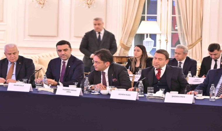 Toplantı sonunda Başkan Oral, Cumhurbaşkanı Yardımcısı Cevdet Yılmaz’a, Erzurum’un simgelerinden Oltu Taşı tesbih hediye etti.