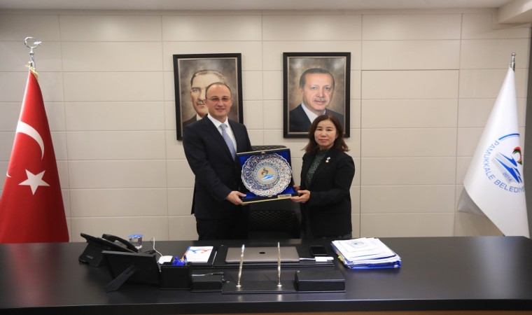 Pamukkale Belediyesi dünyanın farklı noktalarında gelen misafirleri ağırlamaya devam ediyor. Bir dizi ziyaret için Denizli’ye gelen Güney Kore Hwaseong Şehri Meclis Başkanı Gim Gyeong Hee ve beraberindeki heyet Pamukkale Belediye Başkanı Avni Örki’yi makamında ziyaret etti.