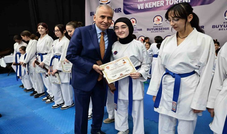 21 ayrı branşta ücretsiz spor kursu veren Denizli Büyükşehir Belediyesi, karate kursunda başarılı olan küçük sporcular için diploma ve kemer töreni düzenledi. Küçük sporcuların sevincini paylaşan Başkan Osman Zolan, "Tüm imkânlarımızı çocuklarımız için seferber ediyoruz" dedi.