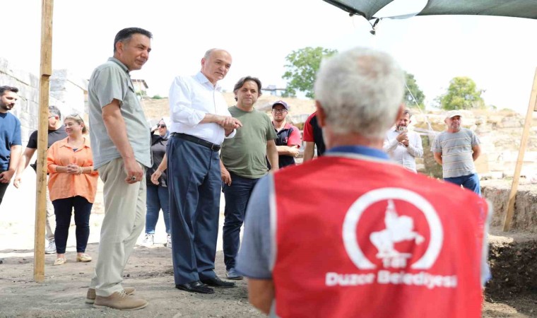 Düzce Belediye Başkanı Dr. Faruk Özlü, Konuralp’te bulunan Antik Kent kazı çalışmalarını yakından takip ediyor. Düzce Belediyesi personellerinden oluşan kazı ekibini ziyaret eden Özlü, çalışanların istek ve taleplerini yerinde dinleyerek; "Burada kalıcı bir iş yapıyorsunuz, bu meşakkatli çalışmalarınızdan dolayı sizinle gurur duyuyorum" ifadelerini kullandı.