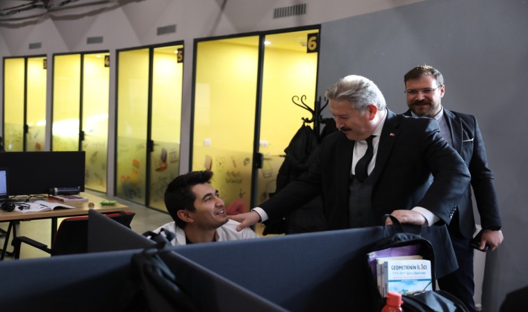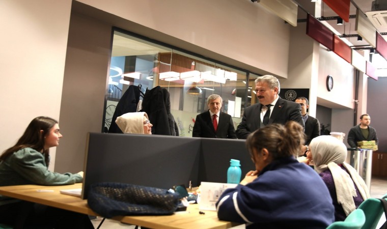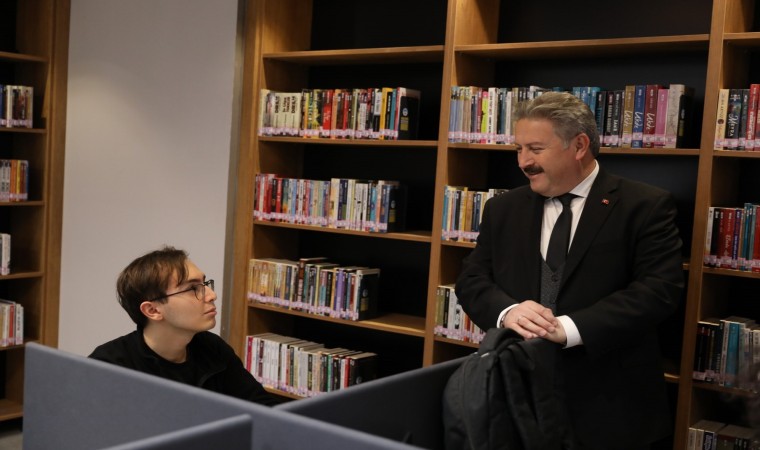 Melikgazi Belediye Başkanı Doç. Dr. Mustafa Palancıoğlu, Belediye hizmet binasında bulunan Akıl Küpü Kütüphanesi’ni ziyaret ederek ders çalışan gençlerle bir araya geldi.