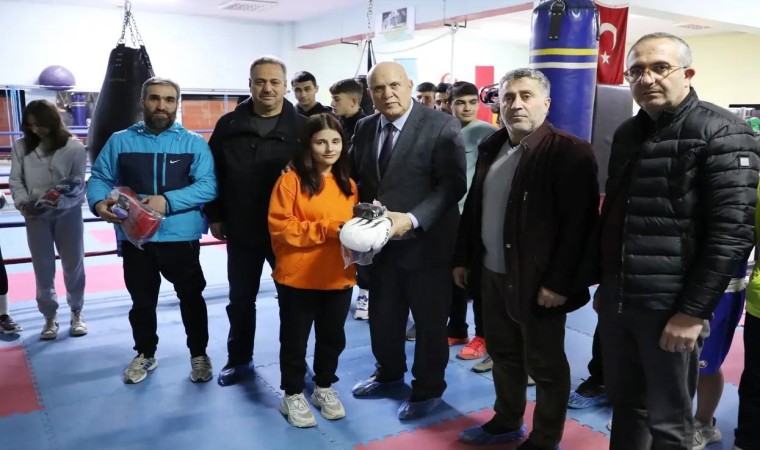 Belediye Başkanı Hükmü Pekmezci, Bayburt Belediyesi Tuğra Boks Spor Kulübü’ndeki sporculara spor malzemesi dağıttı.