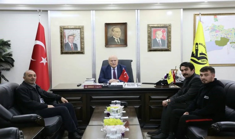 Bayburt Belediye Başkanı Hükmü Pekmezci, Geleneksel Spor Dalları Federasyonu Bayburt İl Temsilcisi Hacı Ali Dağ’ı, Bayburt Atlı Spor Kulübü Başkanı Arif Köprücü’yü ve Cirit Milli Takımına seçilerek Bayburt’u Kırgızistan’da düzenlenen etkinliklerde temsil eden Bayburt Atlı Spor Kulübü sporcusu Mert Altıparmak’ı makamında kabul etti.