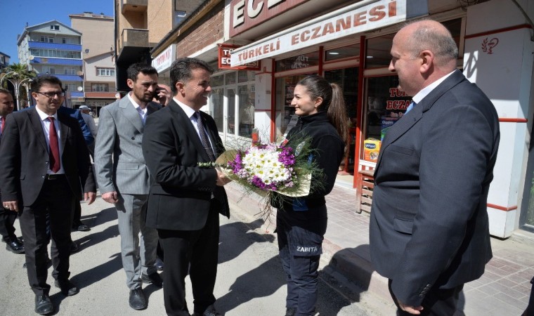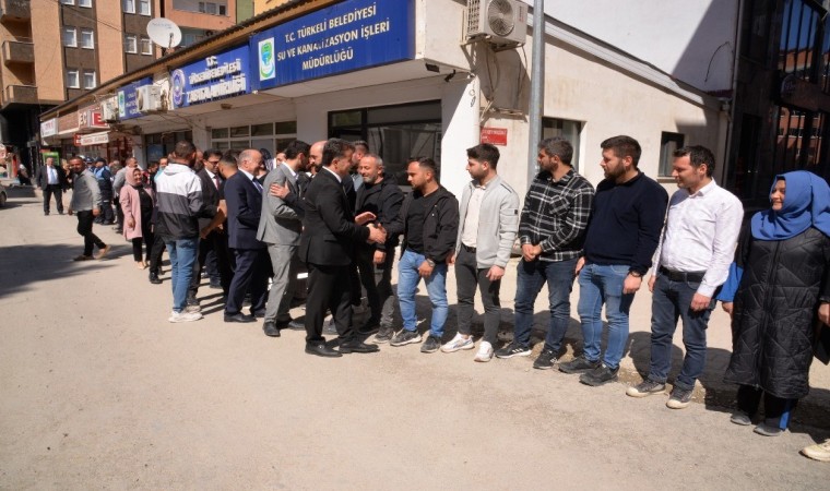 Mazbata töreni sonrası, Belediye BaşkanıVeysel Şahin, belediyepersoneli tarafından çiçeklerle karşılanıp, tebrikleri kabul etti.