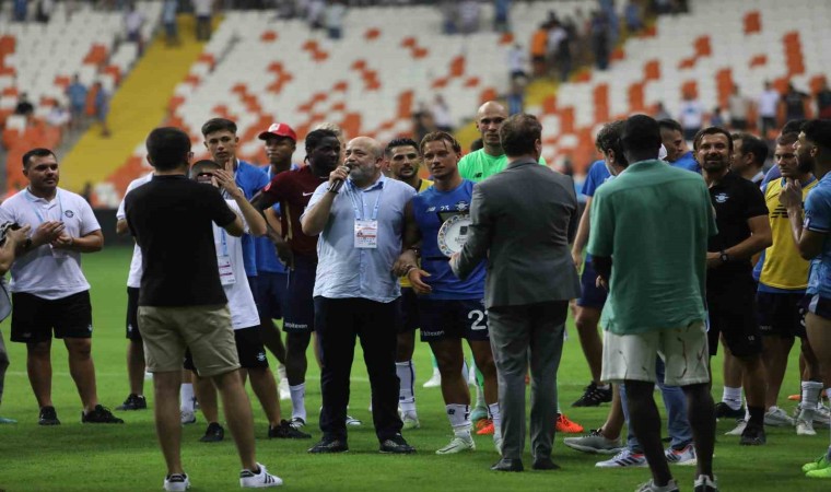 Y. Adana Demirspor Başkanı Murat Sancak, FCR Cluj maçı sonrası takımdan ayrılan Fredrik Gulbrandsen’e teşekkür plaketi taktim etti. Futbolcular da Gulbrandsen’i havaya atıp tuttu.