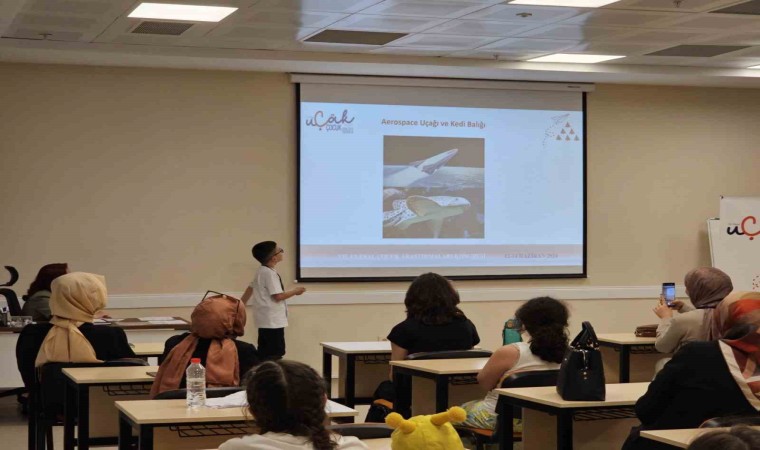 Uçak Çocuk Kongresi’nde bilim, teknoloji ve sanat kategorilerinde hazırladıkları bildirilerle yer alan Canik Özdemir Bayraktar Keşif Kampüsü öğrencileri Yusuf Ali Semiz, ’Doğadan Öğrenmek: Eğitimde Biyomimikriye Dayalı Uygulamalar’, Zeynep Nazen Şahin, ’Oyun-Dans ve Müzik Dersi Motivasyon Ölçümü’, Elif Sena Günek ve Erva Özbey, ’Ortaokul Öğrencilerinin Teknoloji Bağımlılığının Değerlendirilmesi’, Belinay Ekiz ve Damla Nilda Güney, ’Ortaokul Öğrencilerinin Fiziğe Karşı Tutumlarının Değerlendirilmesi: Keşif Kampüsü Örneği’ isimli bildirilerinin sunumunu gerçekleştirdi.