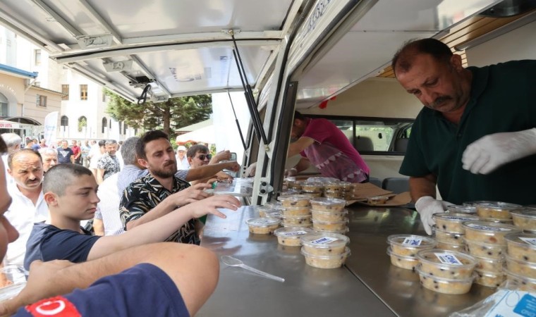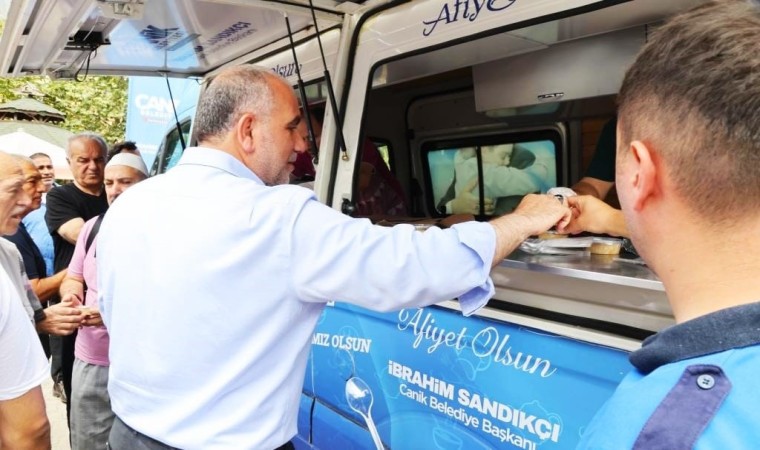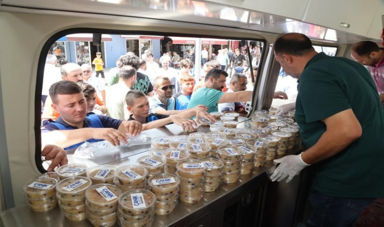 Canik Belediye Başkanı İbrahim Sandıkçı, vatandaşlara aşure ikram etti.