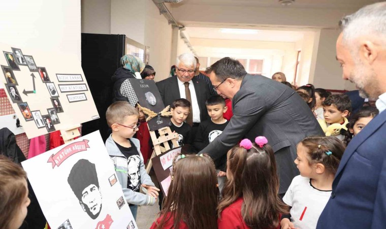 Nevşehir Belediye Başkanı Dr. Mehmet Savran, 19 Mayıs İlkokulu öğrencileri tarafından hazırlanan Atatürk sergisini gezdi.