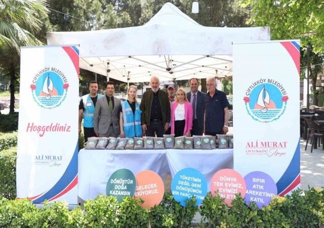Çiftlikköy Belediye Başkanı Ali Murat Silpagar, Çevre Haftası etkinlikleri kapsamında 5 Haziran Dünya Çevre Günü'nde Engelsiz Kafe önünde düzenlenen standda vatandaşlara organik toprak hediye etti. Çiftlikköy Belediyesi'nin deniz yosunları ve evsel atıkları işleyerek ürettiği kompost ürününü halka dağıtan Başkan Silpagar, çevre bilincini artırmayı ve doğayı korumayı amaçladıklarını belirtti.