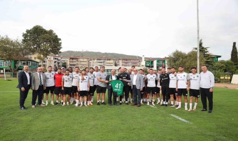 Teknik Direktör Ertuğrul Sağlam da Başkan Söğüt’e hem ziyaretinden dolayı hem de her zaman yanlarında olduğu için teşekkür etti. Körfez Belediye Başkanı Şener Söğüt ve Kocaelispor Başkanı Engin Koyun daha sonra tesislerde yapılan düzenlemeleri de inceledi. Başkan Söğüt’e futbolcular tarafından imzalanan ve isminin yazılı olduğu forma hediye edildi.
