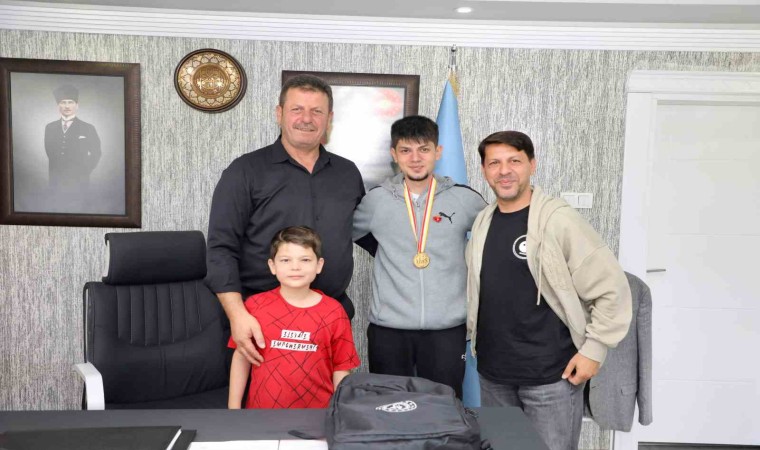 Akyazı Belediye Başkanı Bilal Soykan, Gençler 3 Bant Bilardo Dünya Şampiyonası’nda altın madalya kazanan Akyazılı Milli Sporcu Seymen Özbaş’ı makamında ağırladı.