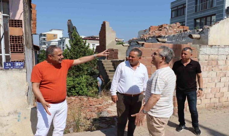 Vatandaşların güvenliğini tehlikeye atan ve yol işgaline neden olan metruk yapıların yıkımlarını hazırlanan plan çevresinde yıkarak temizliğini gerçekleştiren ekipler, ilçeye ferah bir görünüm kazandırıyor. Yeşil Mahalle Alparslan Türkeş Bulvarı üzerindeki kamulaştırılması yapılan metruk binanın yıkım çalışmalarını inceleyen Başkan Tetik, beraberinde Yeşil Mahalle Muhtarı Şenol Öztürk ile ekiplerden faaliyetlerle ilgili bilgi aldı.