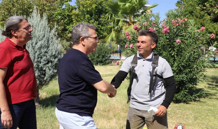 Nazilli Belediye Başkanı Dr. Ertuğrul Tetik, Park ve Bahçeler Müdürlüğü ile Temizlik İşleri Müdürlüğü tarafından yürütülen saha çalışmalarını yerinde inceleyerek, yapılan çalışmalar hakkında bilgi aldı.