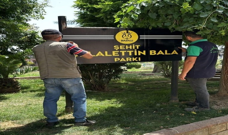 Başkan Tetik’in talimatıyla Nazilli Belediyesi Park ve Bahçeler Müdürlüğü ekipleri Şehit Celalettin Bala Parkı ismini taşıyan tabelanın parka tekrardan takılmasını sağladı.