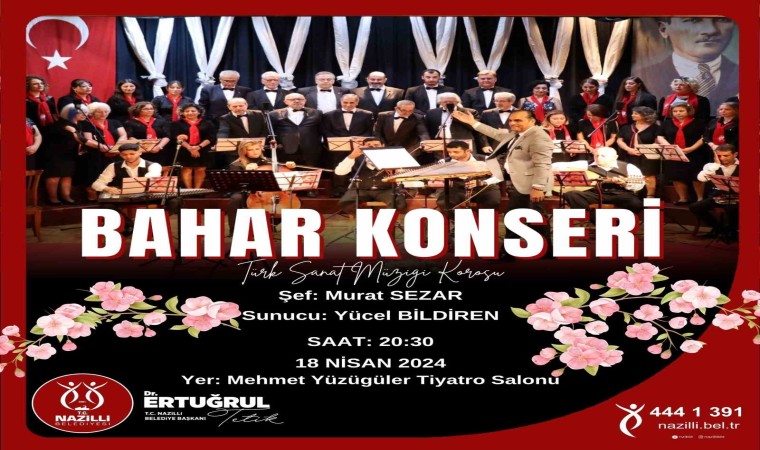 Nazilli Belediyesi bünyesinde var olan Nazilli Belediyesi Türk Sanat Müziği Korosu geleneksel konserlerine devam ediyor. Başkan Tetik, Murat Sezar şefliğinde 18 Nisan Perşembe akşamı saat 20.30’da tüm sanatsever vatandaşları Bahar Konserine davet etti.