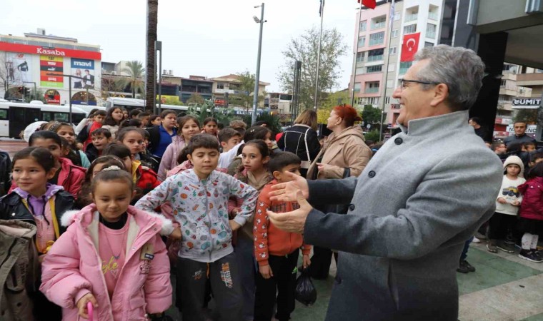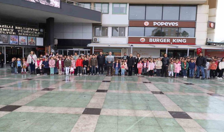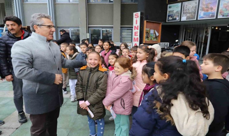 Sabah erken saatlerde okullarından alınan yaklaşık 200 öğrenci, Mehmet Yüzügüler Kültür Merkezi Sinema Salonu’na getirildi. Heyecanları gözlerinden okunan minikleri, Cumhuriyet Meydanı’nda Belediye Başkanı Dr. Ertuğrul Tetik ve Kültür ve Sosyal İşler Müdürü Bahar Erdoğan Uludağ karşıladı. İlk kez sinemaya gidecek olmanın mutluluğunu yaşayan çocuklar, Mustafa Kemal Atatürk’ün çocukluğunu anlatan film ile ilgili öğretmenleri tarafından bilgilendirildi. Patlamış mısır eşliğinde yaklaşık 1 buçuk saat süren animasyon filmini izleyen çocuklar, film sonunda sevinçlerini dile getirerek Başkan Tetik’e teşekkür etti.