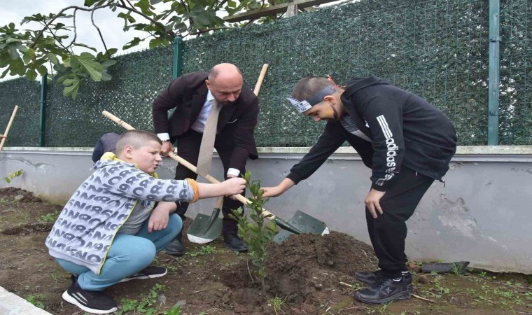 Dursun Korkmaz İlkokulu’nda yapılan etkinlikte Başkan Togar öğretmen ve öğrencilerle bir araya gelerek fidan dikti. Okul çevresinde yapılan ağaçlandırmanın ardından öğrencilere evlerine götürmeleri için de fidanlar dağıtıldı.