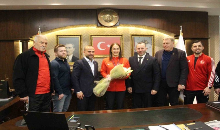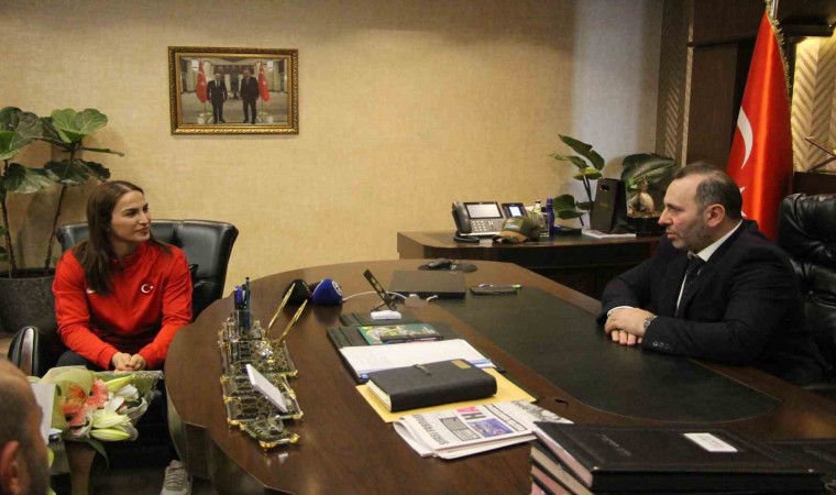 Ziyarette hazır bulunan AK Parti İl Başkanı Umut Güçlü de başarılı sporcuyu tebrik etti.