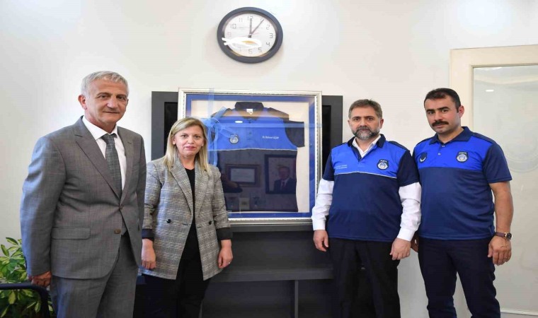 Yakutiye Belediye Başkanı Mahmut Uçar, teşkilat mensuplarını kutladı ve onlarla birlikte zabıta üniforması giydi.