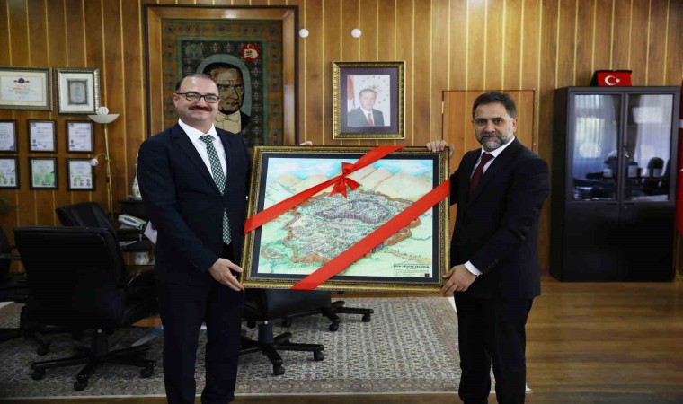 Erzurum’un kalkınması ve üniversitenin başarısı için iş birliğini daha da güçlendirme noktasında fikir birliğine varılan ziyaret, Başkan Uçar’ın Şehr-i Kadim Erzurum adlı eseri Rektör Hacımüftüoğlu’na hediye etmesiyle sona erdi.