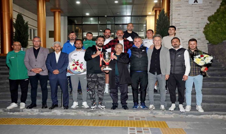 Bolu’daki final maçında İstanbul Kartalspor’u 3-1 yenerek Türkiye şampiyonu olan Talasgücü Belediyespor U14 takımını gece yarısı Başkan Yalçın karşıladı. Belediye önünde her bir oyuncu ve teknik heyetle sarılarak tebrik eden Başkan Yalçın, “Sevgili evlatlarımız sizleri gözlerinizden öpüyorum. Bugün güzel ve onurlu bir günde aynı zamanda duygulu bir akşamdayız. İyi ki bu çocuklar var. İyi ki geleceğimiz bu evlatlarımızla garantide. Geçenlerde iftar programında da arz etmiştim. Cumhurbaşkanımıza, öğretmenlere, velilerimize sorsak en değerli varlığımız gençlerimiz der. Futbolda da ülkemizin daha büyük başarılara imza atması için altyapıdan başlamak gerekiyordu. Şu an itibariyle Talasgücü Belediyespor’da 400’ün üzerinde gencimiz hem okullarında eğitim görürlerken hem de futbol eğitimi alıyorlar. Bu hakikaten onlara verilmiş olan iyi bir fırsat. Bunun kıymetini bilen velilerimizin bize güvenmesiyle evlatlarımızın ülkemizde ve dünyada önemli yerlere geleceğine delalet eder. Velilerimize bize güvendikleri için teşekkür ediyorum. Yönetimimize, hocalarımıza, çocuklarımıza ve Kayseri ASKF’ye çok teşekkür ediyorum. Ömür boyu başarılar diliyorum" dedi. Kayseri Amatör Spor Kulüpleri Federasyonu (ASKF) Mutlu Önal; "Talasgücü 3. Lig’e çıktığında da gurur duymuştuk şimdi de gurur duyuyoruz. Bu başarı azımsanacak bir başarı değil. Talas’ın bu dördüncü şampiyonluğu. Ben size kupa vermekten bıktım! Emeği geçenlere çok teşekkür ediyorum.” diye konuştu. Talasgücü Belediyespor Kulübü Başkanı Yunus İloğlu, “Başkanımız 2019 yılında da Talas’a başkan seçildiğinde U19 takımı olarak Türkiye şampiyonu olmuştuk. O gün de mazbatasını aldığı gündü bugün de mazbatasını aldığı gün ve yine şampiyon olduk. Desteklerinden dolayı teşekkür ederim.” ifadelerini kullandı.
