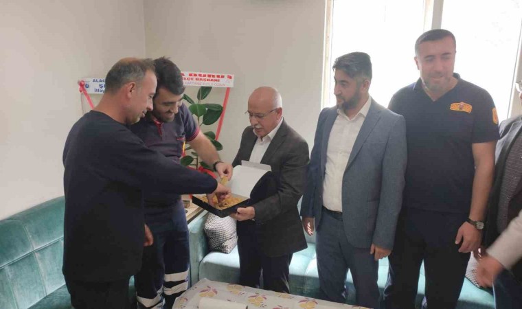 Alaca Belediye Başkan yardımcısı Oktay Yelkuvan, Hizmet-İş sendikası Başkanı Mustafa Köroğlu ile İtfaiye Haftası dolayısıyla Alaca Belediyesi İtfaiye Amirliği’nde görev yapan itfaiye personelini ziyaret etti.
