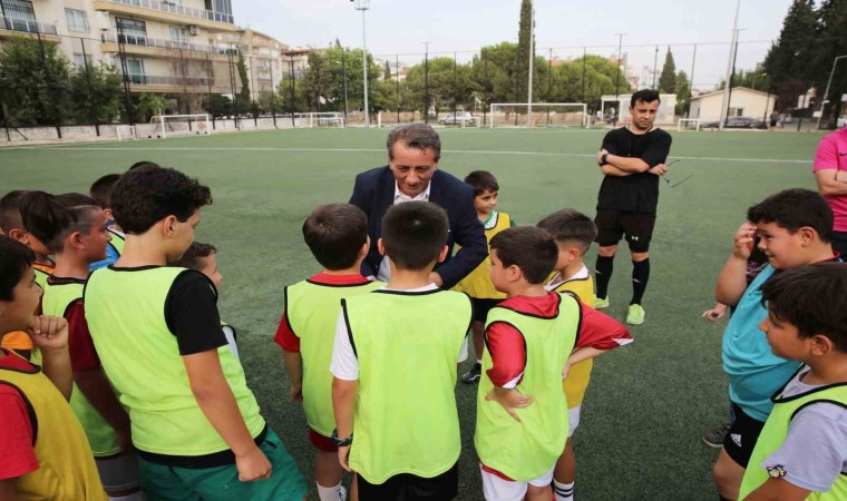 Efeler Belediye Başkanı Anıl Yetişkin, belediyenin yaz kursları kapsamında düzenlenen futbol kursunu ziyaret ederek çocuklarla bir araya geldi.