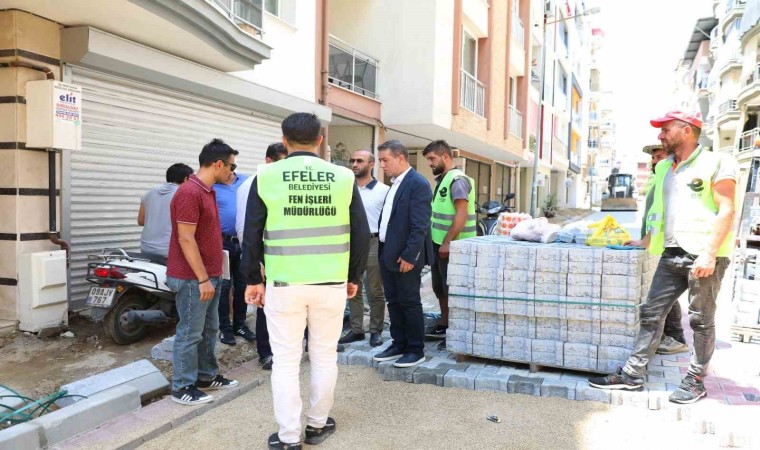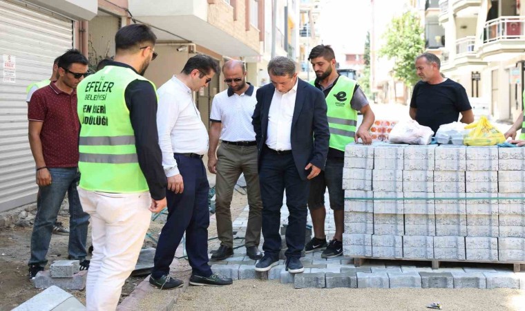 Efeler Belediye Başkanı Anıl Yetişkin, Meşrutiyet Mahallesi’nde devam eden parke taşı döşeme çalışmalarını yerinde inceledi.