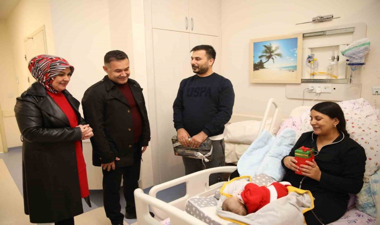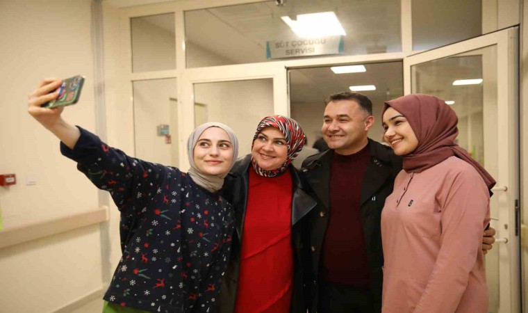 Sağlık çalışanlarını ve yenidoğanları ziyaret etti