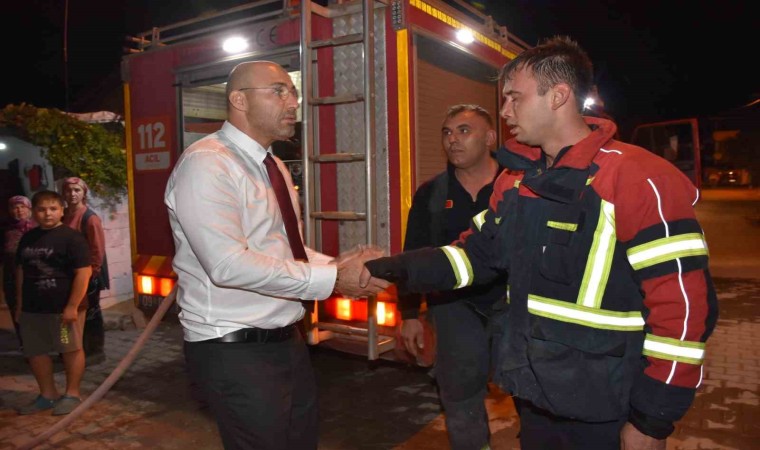 Aydın’ın Germencik ilçesinde akşam saatlerinde bir evde çıkan yangın sonrasında kutlama programını yarıda kesen Belediye Başkanı Burak Zencirci, bölgeye giderek incelemelerde bulundu, aileye ’geçmiş olsun’ dileklerini iletti.