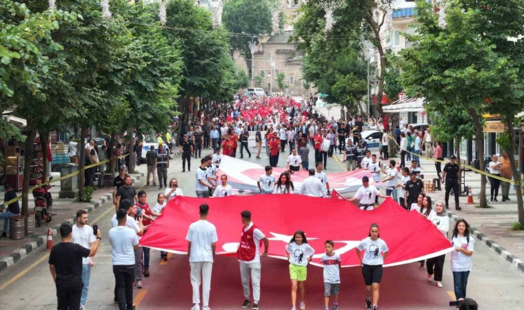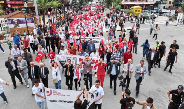 Sultan Camii önünden Türk bayrakları ve Atatürk fotoğrafı eşliğinde yürüyüşe geçen kortej, İzmir Caddesi, Cumhuriyet Caddesi ve Atatürk Bulvarı üzerinden Cumhuriyet Meydanı’na ulaştı. Atatürk ve Milli Egemenlik Anıtı’nı önünde devam eden programda saygı duruşu ve İstiklal Marşı’nın okunmasının ardından Atatürk ve Milli Egemenlik Anıtı’na çelenkler sunuldu. Tören programında CHP İl Başkanlığı başta olmak üzere sivil toplum örgütleri tarafından anıta çelenk sunuldu. Öğrenciler tarafından okunan şiirlerin ardından CHP Manisa İl Başkanı İlksen Özalper günün anlamına yönelik bir konuşma gerçekleştirerek herkesin bayramını kutladı. Yapılan konuşmaların ardından halk oyunları ekibi tarafından düzenlenen gösterinin sonrasında CHP Manisa İl Başkanlığı tarafından düzenlenen tören programı sona erdi.