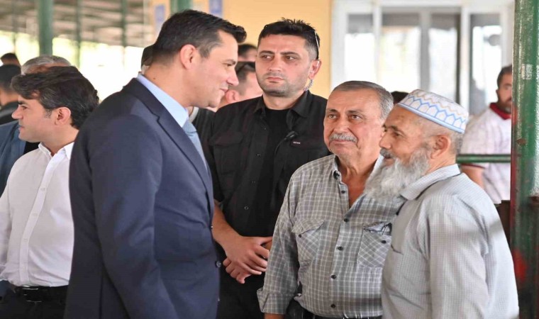 Kurban Bayramına sayılı günler kala kent merkezinde bulunan Canlı Hayvan Borsası’nda kurbanlık hayvan satışları devam ediyor. Manisa Büyükşehir Belediye Başkanı Mimar Ferdi Zeyrek, Genel Sekreter Yardımcısı Ulaş Aydın ve Sağlık İşleri Dairesi Başkanı Erhan İnce ile birlikte hayvan satışlarının gerçekleştirildiği Hayvan Borsası’nı ziyaret etti. Farklı şehirlerden ve Manisa’nın ilçelerinden gelen kurbanlık hayvan satıcılarına bereketli satışlar dileyen Başkan Ferdi Zeyrek, taleplerini de dinledi. Başkan Ferdi Zeyrek, kurbanlık havyan satın almak için Canlı Hayvan Borsası’na gelen Manisalılarla da bir sohbet etti. Kesilecek kurbanların kabul olmasını da temenni eden Başkan Zeyrek, inceleme esnasında karşılaştığı kurban pazarlığına da eşlik ederek, satıcı ve alıcının anlaşmasını sağladı.