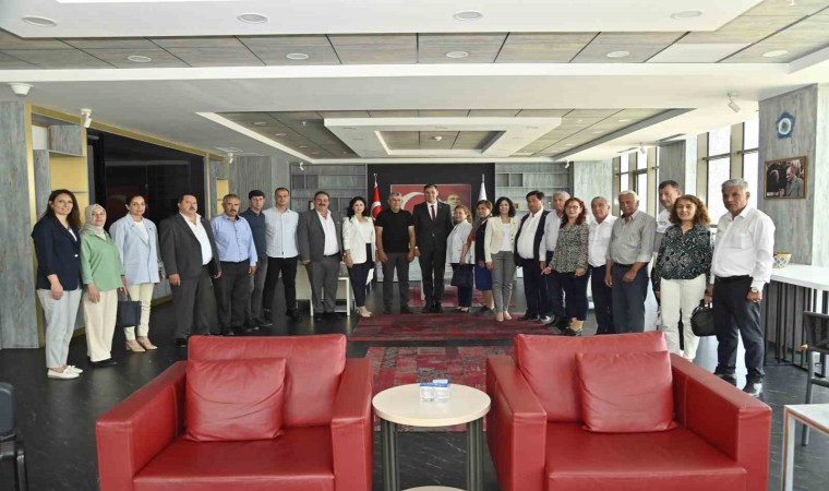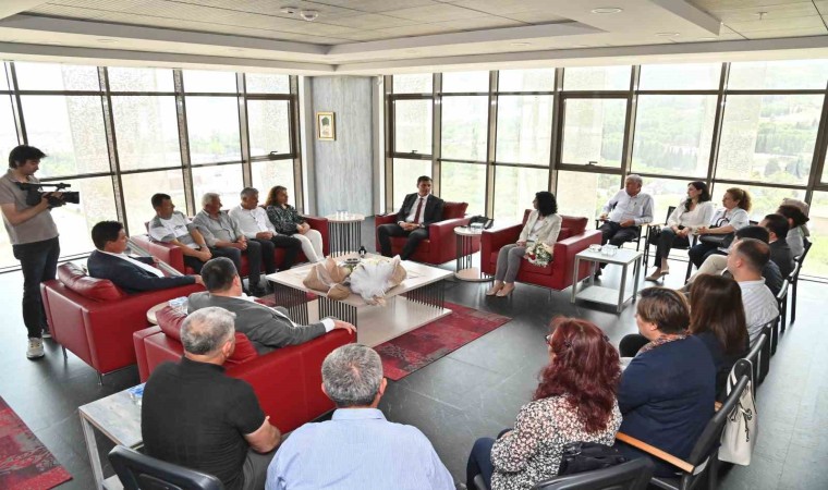Manisa Büyükşehir Muhtarlar Yardımlaşma ve Dayanışma Derneği Başkanı Siyami Alak, Yunusemre Muhtarlar Derneği Başkanı Bedriye Pehlivan, Şehzadeler Muhtarlar Derneği Başkanı Hakkı Başaral ve mahalle muhtarları Manisa Büyükşehir Belediye Başkanı Mimar Ferdi Zeyrek’e hayırlı olsun ziyaretinde bulundu. Yunusemre Muhtarlar Derneği Başkanı Bedriye Pehlivan, Başkan Zeyrek’i tebrik ederek görevinde başarılar diledi. Dernek Başkanı Pehlivan, Yunusemre Muhtarlar Derneği’nin gerçekleştirdiği çalışmalar hakkında da bilgiler aktardı. Şehzadeler Muhtarlar Derneği Hakkı Başaral ise, “67 muhtarımızın selamını getirdim. Hayırlı uğurlu olsun. Bizleri konuk ettiğiniz için çok teşekkür ederiz” dedi. Büyükşehir Muhtarlar Yardımlaşma ve Dayanışma Derneği Başkanı Siyami Alak da, “Arkadaşlarımızın hepsinin selamı var. Biz de hayırlı uğurlu olsun demek istedik” diye konuştu.