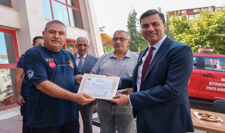 Manisa Büyükşehir Belediye Başkanı Mimar Ferdi Zeyrek, Manisa genelinde meydana gelen orman yangınlarında yoğun gayret sarf eden itfaiye personeline başarı belgesi takdim etti. İtfaiyecilere emeklerinden dolayı teşekkür eden Başkan Zeyrek, ikramiye müjdesi de verdi.