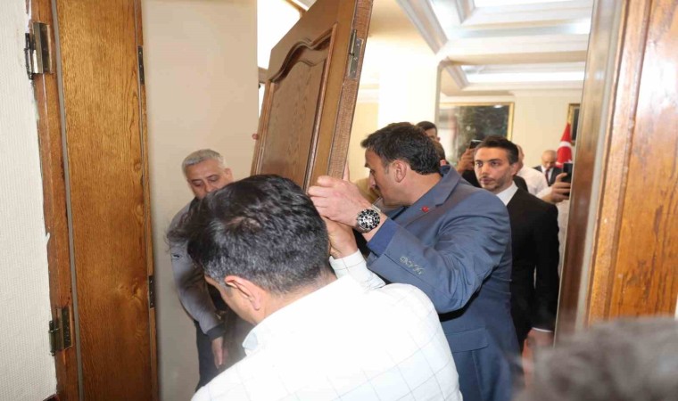 Hatay’ın İskenderun ilçesinde sandıktan zaferle çıkan Belediye Başkanı Mehmet Dönmez’in ilk icraatı makam kapısını sökmek oldu.