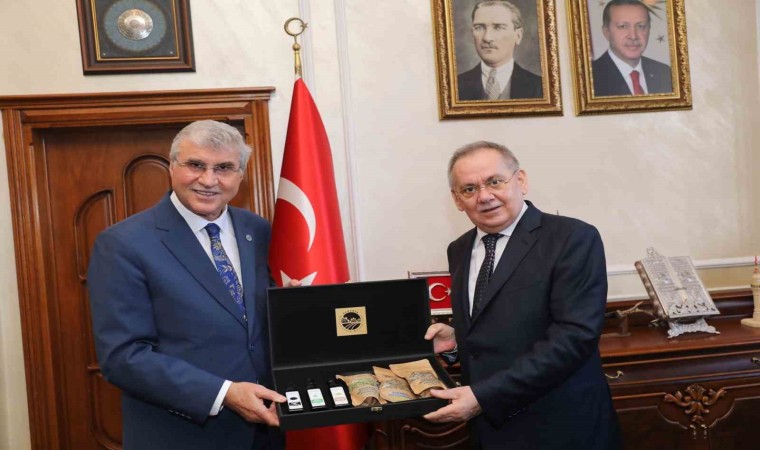 Agricities 2023 yılı Yönetim Kurulu Toplantısı ve 2’inci Küresel Tarım Forumu’na katılmak izin kente gelen Uluslararası Tarım Şehirleri Birliği Başkanı olan Konya Büyükşehir Belediye Başkanı Uğur İbrahim Altay, Ordu Büyükşehir Belediye Başkanı Hilmi Güler, Sakarya Büyükşehir Belediye Başkanı Ekrem Yüce, Erzurum Büyükşehir Belediye Başkanı Mehmet Sekmen, Samsun Büyükşehir Belediye Başkanı Mustafa Demir’i makamında ziyaret etti. Ziyaret sırasında projelerle ilgili fikir alışverişinde bulunuldu. Ardından Başkan Demir, hediye takdiminde bulundu.