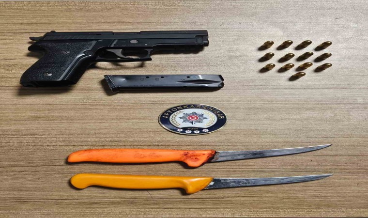 Afyonkarahisar’da bir başkasına ait ruhsatlı tabanca ile alkollü bir şekilde polis yakalanan şahıs gözaltına alındı.