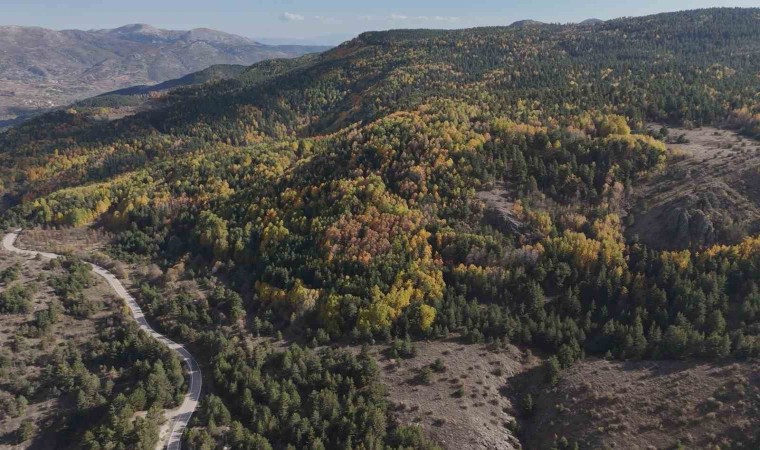 Ankara’nın Karadeniz bölgesi özellikleri gösteren kuzeydeki Kızılcahamam ve Çubuk ilçelerinde sonbaharın güzellikleri dron ile görüntülendi.