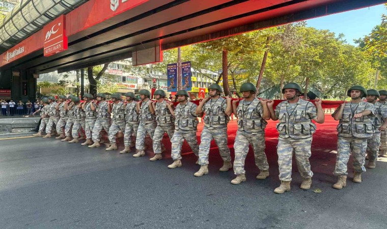 Mustafa Kemal Atatürk’ün büyük boy posteri ve Türk bayrağını taşıyan askerlere, Kara, Deniz ve Hava Kuvvetleri Komutanlıkları, Türk Silahlı Kuvvetleri Armoni Mızıkası ve Jandarma Genel Komutanlığından oluşan Karma Bando takımı eşlik etti. Mehteran takımının da bulunduğu yürüyüşte, Kurtuluş Savaşı döneminin askeri üniformalarını temsilen giyen bölük de yer aldı. Kortejde bulunan atlı birlikler ise vatandaşların ilgisini çekti.