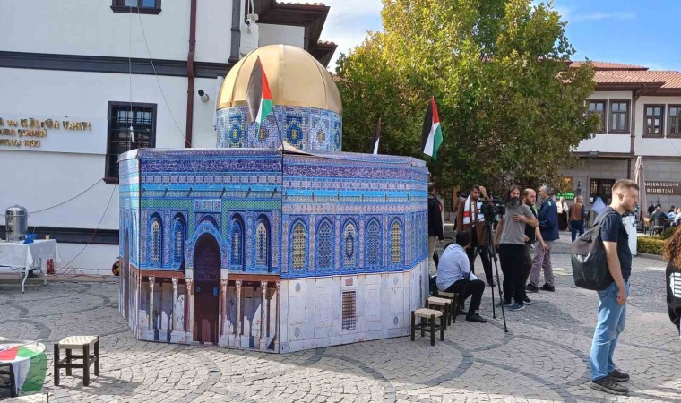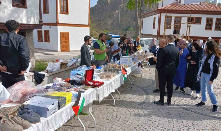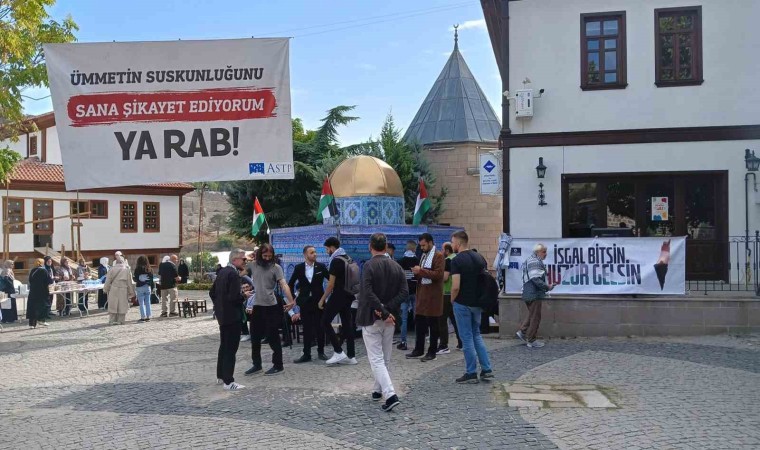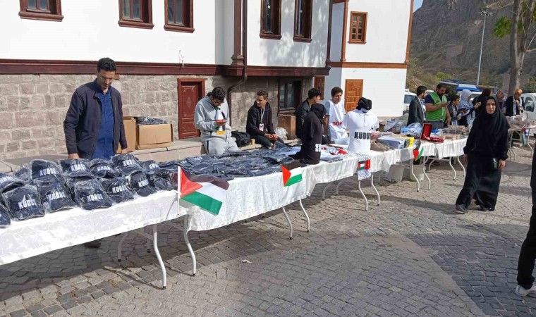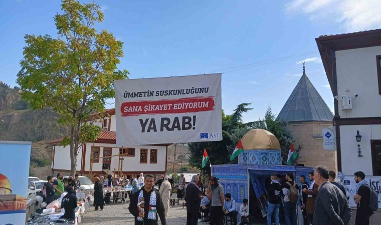 Ankara’da bir araya gelen vatandaşlar, Filistin’e destek olmak için bir araya gelerek Hacı Bayram-ı Veli Cami’sinin bahçesinde yardım sergisi açtı.