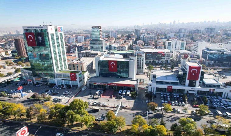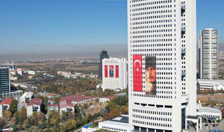 Ankara’da kamu ve özel binalara 29 Ekim Cumhuriyet Bayramı dolayısıyla asılan Türk bayrakları kenti kırmızı beyaza bürüdü.