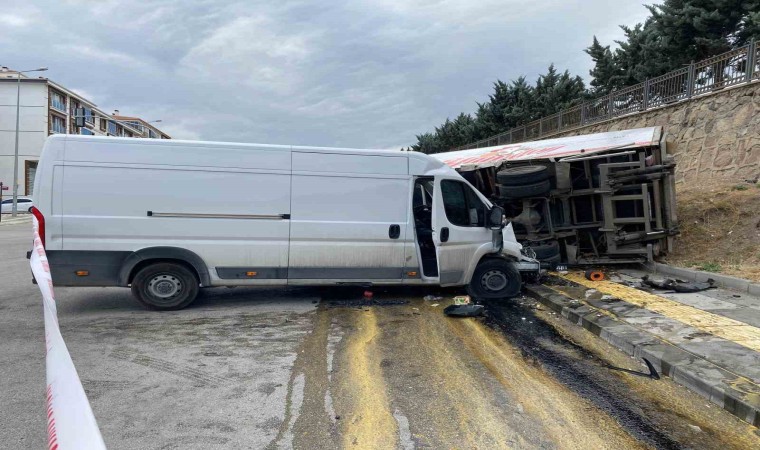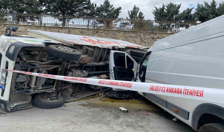 Ankara’da ticari araç yumurta yüklü kamyona çarptı. Kazada 1 kişi yaralanırken kamyonetteki yumurtalar ise yola saçıldı.