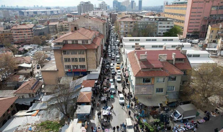 Ramazan Bayramı öncesi Ankara’nın çeşitli noktalarında oluşan trafik ve alışveriş yoğunluğu havadan görüntülendi.