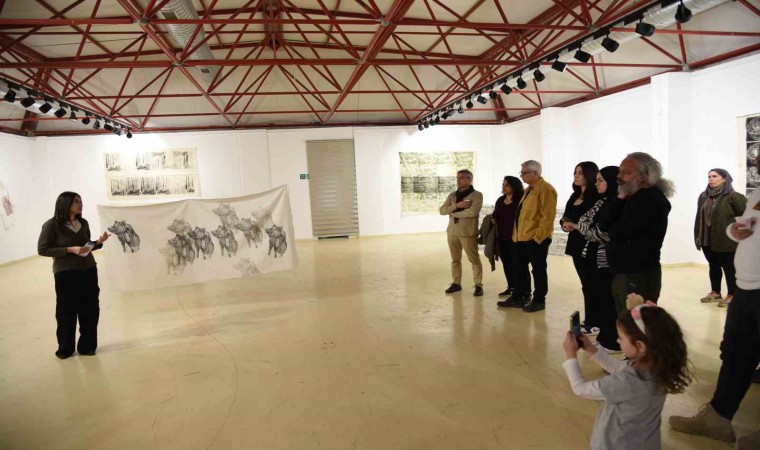 Ham bez üzerine linol baskı tekniği kullanılarak oluşturulan bu serginin, tek kavrama odaklanmak yerine, her bir sanatçının kendi sanat pratiğini baskı dili ile aktardığı üretim süreçlerinin yansımaları olduğunu dile getiren Burcu Günay, sergide emeği geçen herkese teşekkür etti.
