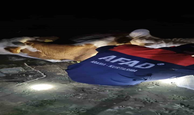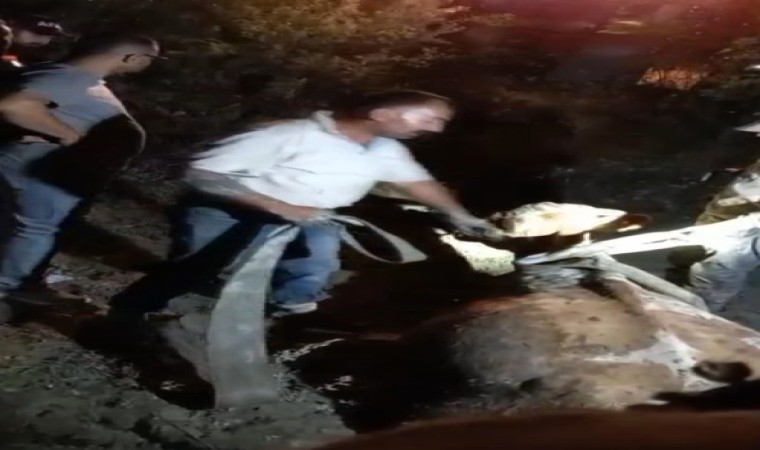 Muş’ta bataklığa saplanan inek, ekipler tarafından kurtarıldı.